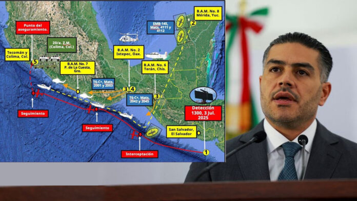El incidente diplomático se originó tras una operación de seguridad realizada el 4 de julio en territorio mexicano, cuando autoridades interceptaron una avioneta no registrada que transportaba 427.65 kilos de cocaína. Según García Harfuch, la traza de la aeronave fue detectada a 200 kilómetros al sur de San Salvador, lo que motivó su presunta vinculación con El Salvador.