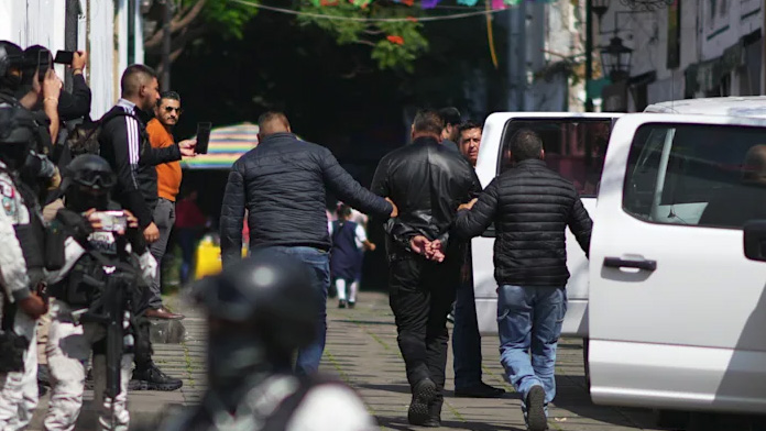 Los arrestados fueron sacados esposados de la Casa de Cultura, antigua sede del ayuntamiento y junto a la plaza central donde fue el asesinato, en medio de un fuerte despliegue de seguridad formado por efectivos del Ejército, la Guardia Nacional y agentes estatales, según constató The Associated Press.